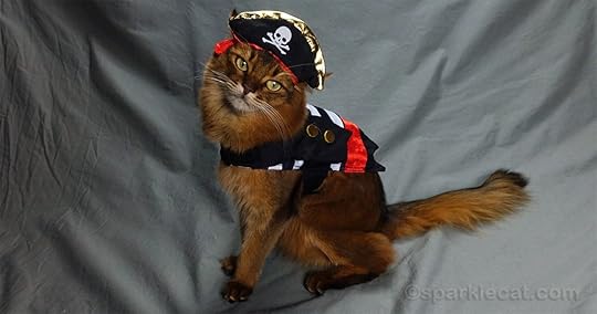 This pirate costume, which is kind of a favorite among readers, isn’t actually a cat costume. It’s a Guinea pig costume that my human picked up in 2018.