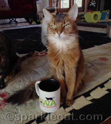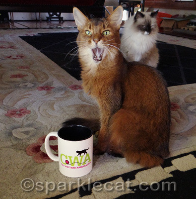 Wait a minute! You mean the Cat Writers’ Association isn’t run by cats? It’s made up of humans who write about cats? And the mug belongs to my human, not me? But that is so wrong! All these humans in the Cat Writers’ Association would be nothing if not for us kitties! Nothing, I tell you!