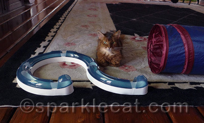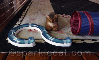 Ball and track type of toys are Boodie’s favorite, so she pretty much took over the Play Circuit. I think somekitty was not thrilled about this.