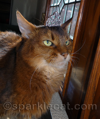 In spite of appearances, trust me, the humans are very happy to have her here — even though they weren’t actually looking for her and were only rescuing her because they did not want to leave her in a kill shelter. The original intention had been to find a home for her.