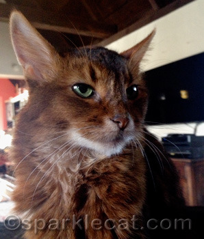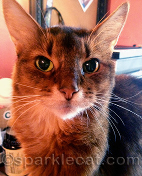 Technically, Abyssinian and Somali cats with my coloring are called “ruddy,” but I think you could call it copper too! Some days my fur glows as bright as a shiny new penny! Although I hear pennies don’t have much copper in them anymore.