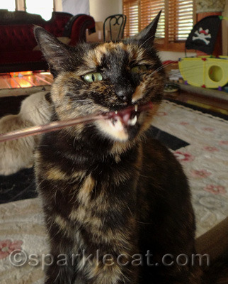 Wordless Wednesday: Binga and the Wrong End of a Wand Toy