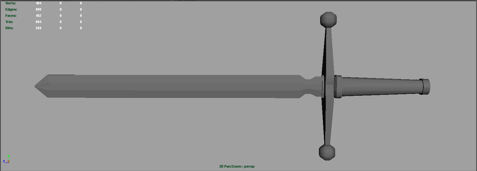 Why Maya? Well, as an aspiring game artist, I am seeing a lot of job postings asking for knowledge of Maya and I can't help but wonder if my not knowing it is hurting my chances of getting a job in the industry. Another strong motivator is that Maya LT is now a thing so learning to use this tool could open up a number of freelance or indie options for me. The sword below is my first project in this program which was made by following a tutorial by this YouTube Channel: https://www.youtube.com/user/BrainPoof