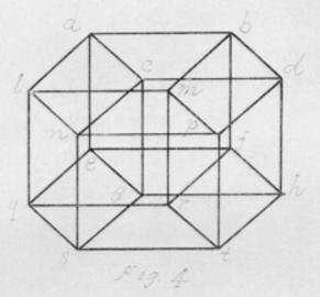 In 1827, as I noted in The Gnostic Notebook: On Plato, The Fourth Dimension and the Lost Philosophy, August Ferdinand Moebius wrote: "… two equal and similar solid figures, which are however mirror images of each other, could be made to coincide if one were 'able to let one system make a half revolution in a space of four dimensions. But since such a space cannot be conceived, this coincidence is impossible in this case."Moebus had already taken the first few steps into the Fourth Dimension. In 1880, W.I. Stringham’s published an article titled, "Regular Figures in N-dimensional Space", in the American Journal of Mathematics. In this article he included sketches of various higher dimensional shapes, including the tesseract.