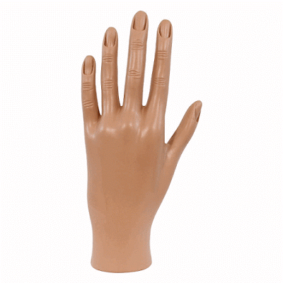 So the one-half twist in the Moebius Strip allows the Flatlander to become his mirror opposite. This allows us to reason by analogy and take the entire process one dimension up. Instead of a two-dimensional Flatlander, we can imagine the unattached left hand of a shop mannequin. Here, in our three-dimensional world, it will always remain a left hand. However, if a four-dimensional being were to reach into our world and rotate the mannequin hand a single half-turn around the fourth dimension, we would see the left hand transformed into a right.