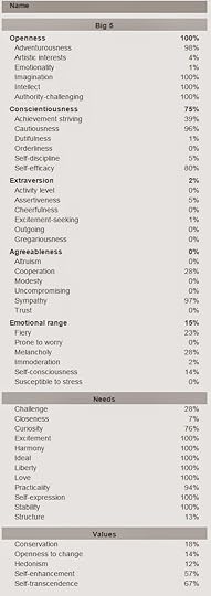 I decided to take the description of my book The Gnostic Notebook and put it in The Watson Personality Insights service.
