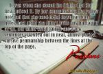 Titus’ eyes drifted to the buildings, some already mended from the quake and others in desperate need of attention; but he was not interested in the cracks that scarred the stone. He read the imprudently scrawled phrases and pictures. Some were humorous or obscene, but some were profound and were not covered by tapestries or potted plants to hide their existence.