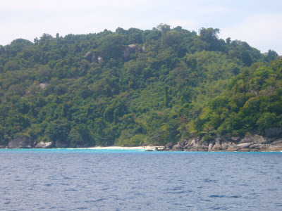 At first, I didn't think we'd get close enough to get a shot of it because our boat anchored around the backside of the island and then we were supposed to go on to another island for the second dive. But, to my surprise, the boat moved into a gorgeous spot called, "Hide-Away," off Islands #5 in the Similan chain--and I had this perfect view of Honeymoon Bay. I...