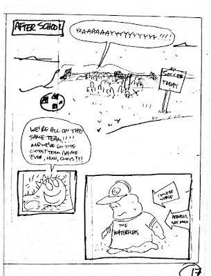 It's soccer season! But the Waterfleas are getting pummelled game after game. Squish knows winning isn't everything, but it's something right? Can Squish turn the losing streak around when he becomes team captain? Will Pod figure out how to harness the power of lightning? And how can amoebas play soccer when they don't have any feet? We had a lot of fun making this one. Here's one of the early lay-outs: