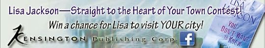 If you’ve had a chance to check out the Lisa Jackson Facebook app, (and if you haven't you should!) you’ve seen the contest: “BRING LISA TO YOUR TOWN.” My publisher's idea, it’s a launch party for YOU DON'T WANT TO KNOW, and I'll be celebrating with all of the fans from the winning city. Anyone in the U.S. is encourage to vote as many times as they'd like until the end of June. Oh, and make sure to share with friends in your area, so that on August 7th, when the book is officially on sale, we can all celebrate together! I'll be in your town, signing books and handing out prizes, and mingling with everyone who voted me to your town. It should be lots of fun and I’m looking forward to the trip.