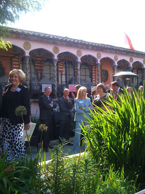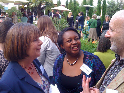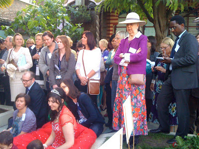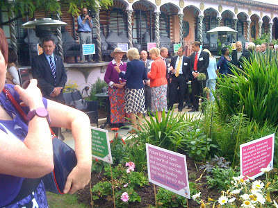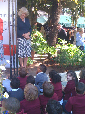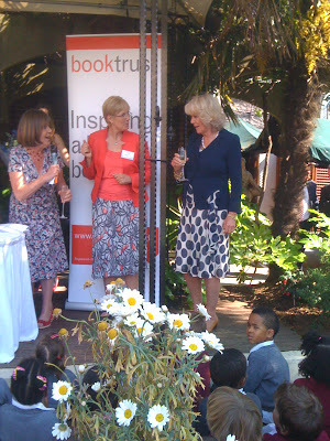 Camilla talking to Shirley Hughes. SPOT the SECURITY MAN on the left.