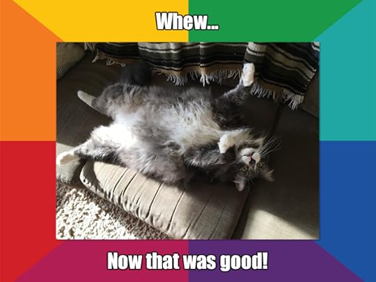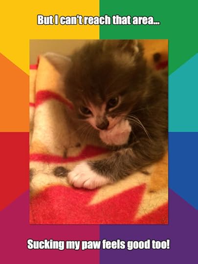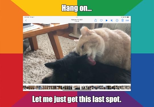 Okay, before all your minds head straight for the gutter…that isn’t what this blog is about. As I was almost into dreamland the other night, my oldest rescue cat started licking my hair. He typically sleeps on my pillow and I can only manage to grab a small corner of the pillow, but my hair tends to fan out. He must have decided it needed grooming. The other two male cats bookended me and both of them began licking as well. One was licking my face, while the other started on my hand. My female cat has also started this licking routine when she cuddles with me on the couch as I watch the news. It got me to thinking, what’s with all the licking? It’s annoying. I can groom myself. Thank you very much.