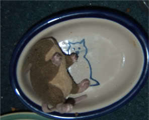 I walked through the kitchen this past weekend, nothing too unusual there. It was probably around 12:30 p.m. and yes, I was running late when it came to feeding the Vache. I don't know about your animal (should you have one), but Vache can tell time. When that first paw touches me in the morning a quick glance at the alarm clock shows it to be 5:19 a.m. on the dot. Every single day, weekends not excluded. So, I shouldn't have been surprised that Vache had been waiting for over a half an hour for his expected snack, or that he had found a way to communicate his displeasure when it failed to appear. Here's a picture of his method: