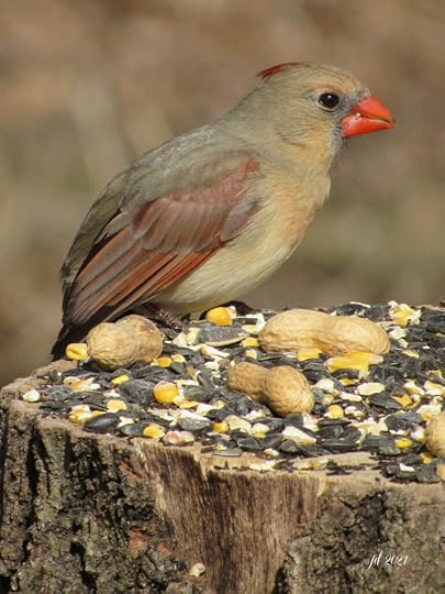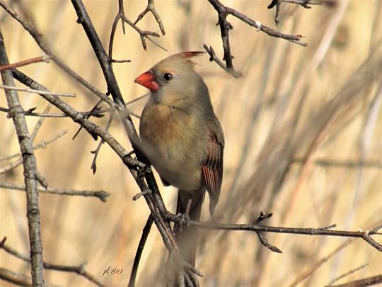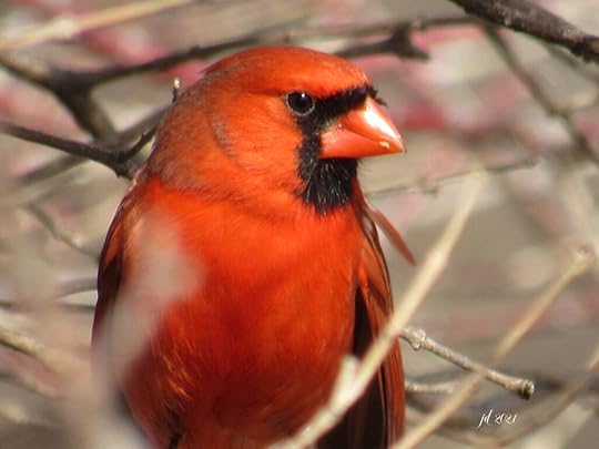 A few minutes into our time together, another female cardinal showed up and settled near the male. She moved closer to him, and it seemed to me she was flirting with him. He kept his eyes on the lady he came with. I liked him for that.