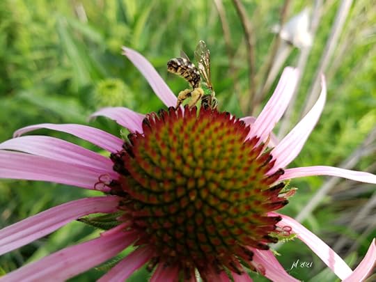 It is so cool the way a desire for something from God and questions that pressed on my heart, led to a longer walk and then to the glimmer of green that was a pollen-seeking bee that led me to a new desire: to pray fervently for those who ask for it.