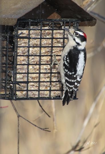 Once Jon got it put up, I went inside. A downy or two fluttered in and then away. It was the same with the brave and often bold chickadees. Otherwise, I was alone for weeks.