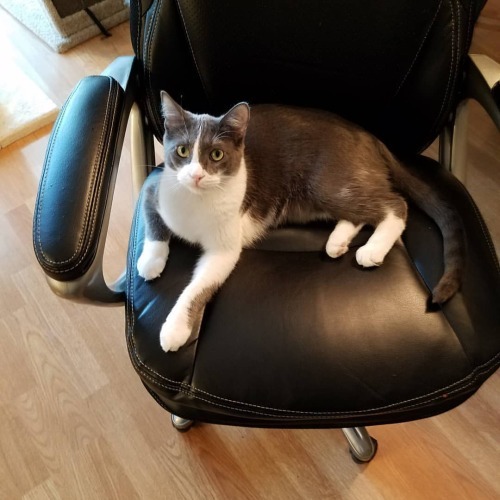 Jasper’s new trick. When he sees me headed for my “work chair,” he jumps up to claim it before I can sit down. Not sure how he’s going to handle it when I return to the office next week. #catsofinstagram (at Palatine, Illinois)