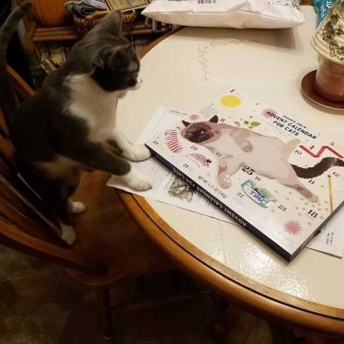 So the deal is Jasper gets to enjoy his @traderjoes kitty Advent...