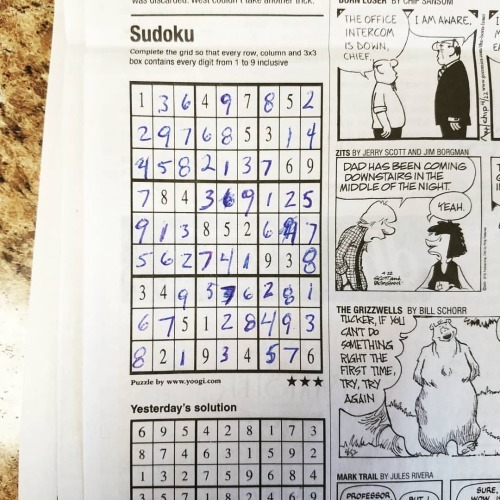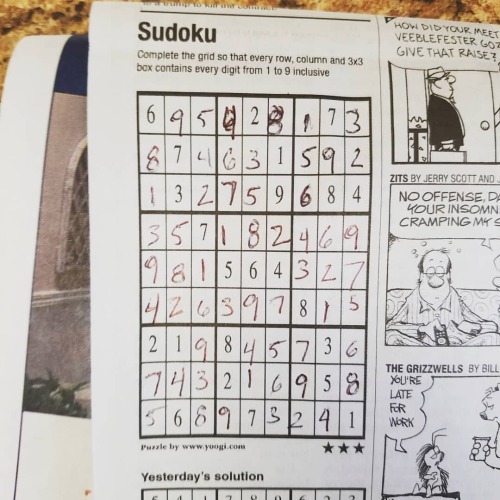 Three days in a row! I made a few mistakes this time but caught them right away. #sudoko