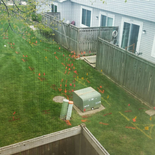 While I wasn’t looking, someone turned our “back yard” into a game board. I wonder what the rules are. (at Palatine, Illinois)