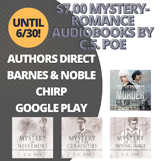 Now through June 30th, four C.S. Poe mystery-romance audiobooks are on sale for only $7.00. This sale is exclusive to Authors Direct (C.S. Poe's official audio storefront and the best method of supporting indie authors and their available audio), Barnes & Noble, Chirp, and Google Play.