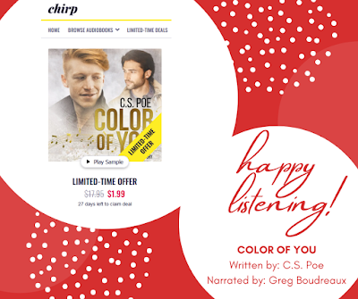For a limited time, Color of You (A Lancaster Story: Book Three), narrated by Greg Boudreaux, is on sale for only $1.99!