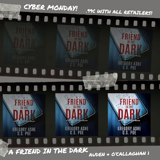 Cyber Monday only! Pick up the first book in the Auden & O'Callaghan Mysteries, co-written by Gregory Ashe and C.S. Poe. A Friend in the Dark is only 99c! This sale is available everywhere, including Amazon, Barnes & Noble, Google Play, iBooks, Kobo, and Smashwords. And with the recent release of Book 3, A Friend in the Glass , now is a great time to start the series and meet our cynical and sarcastic duo, Sam and Rufus.
