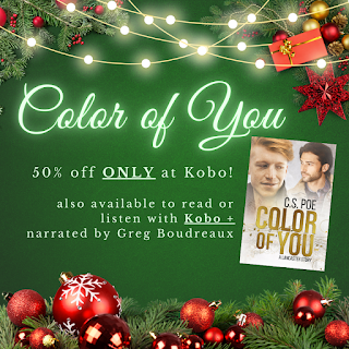 Color of You is on sale, only at Kobo! Pick up Book Three of A Lancaster Story (can be read entirely as a standalone) for 50% off during December. You can also read in or listen with your Kobo+ subscription, with audio has been narrated by the wonderfully talented Greg Boudreaux.