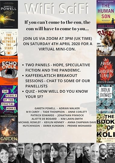 Well, I’m not sure I need to say anything more, do I? Basically, the indefatigably brilliant (or brilliantly indefatigable – whatever, it’s late) Anne Corlett has in a short space of time assembled the most amazing array of talent ever to grace a Zoom-based virtual mini-con panel. Oh, and me. Not sure what I’m doing in there, but I’ll take any opportunity I’m given.