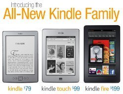 Topping out the collection is the Kindle Fire. It's pricier, but you get cool for those two Benjamins. iPad-like touch interface, access to books, movies, TV shows, email, probably even blenders and skinny jeans from Amazon's non-book shops. Color. Did I mention that it's cool? Only the basic Kindle is available now; the Touch and Fire won't be out until November.