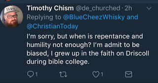 Of course, there are some clear heads among the orthodox who have some genuine concerns about Driscoll’s return which may be valid. Driscoll did release at least one tearful video in which he seemed to apologise. But some are saying that his ‘I’m sorry’ was only emotive and woefully insufficient (on a practical level) given the extent of the mess he left behind. There are still many hurt people back in Seattle, they say, and he has not adequately made restitution with them. He needs to clean up his mess before he steps back into public ministry.