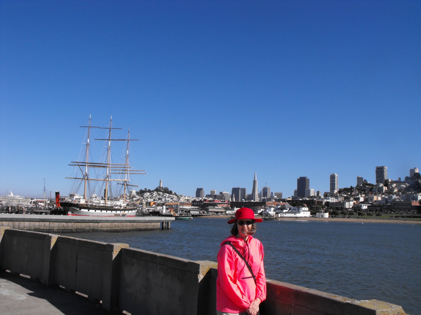 I'm still wading through copy edits, so this post will be quick. I think I'm out on the Municipal Pier here. You can see some of the San Francisco skyline behind me. The building up on the hill on the left is the Coit Tower--it has some great murals--and our legs got quite the workout hiking up to it. (Though any walking in SF is good exercise.) The pointy building is the Transamerica Pyramid. I was puzzled by that ship the last time I was in SF--it's part of the Maritime Museum. It's late 19th century, so not of immediate interest to a Regency writer. The water behind me is the Aquatic Park Cove, shared by boats and swimmers--and I suspect some seals and sea lions (though I'll confess I'm a little unclear of the difference between those two.) My Bookmas clues: 1. What Regency debutantes might do at Almack's; 2. Piccadilly after hours; 3. I was in fourth grade; we were washing our desks.