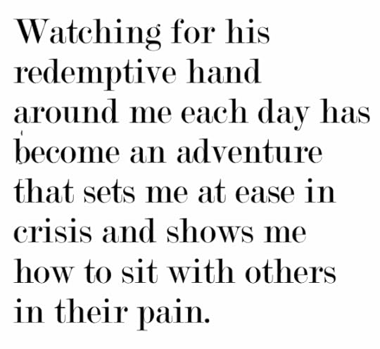 That kind of love rearranges our hearts from the inside, making us more loving, gracious, and a comfort to others. Watching for his redemptive hand around me each day has become an adventure that sets me at ease in crisis and shows me how to sit with others in their pain. I don’t have to fix them; I just get to be present as love does its work.