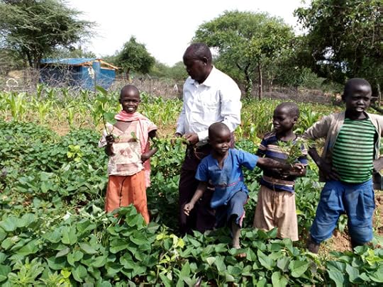 The above picture is the first fruits of the harvest in Ngetut village—sweet potatoes they grew themselves. Below you’ll see pictures of the joy of the villagers as they are installing the newest agricultural project in our third village. We helped drill these wells three years ago and with solar panels, a tank and some plumbing, they are able to expand the use of those wells so that in addition to having water for drinking and cooking, they are now able to water their livestock, and to irrigate vegetables. This is the first time they are able to grow their own food and it has even caught the attention of the government.