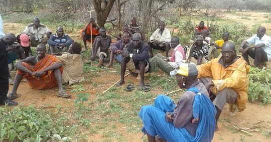 As I was there, the elders from the village where we built the school, sent the delegation of elders just walking, guided by the committee, they came in Ngetut irrigation project purposely of requesting us if we can help them to do the same. (See picture t right) I listened to everybody share about the Almighty God. It is a great evangelism to this work. I interacted with them and I was so happy after hearing that many of them were involved to help the Ngetut people for digging and clearing the bush.