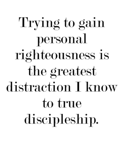 I’m convinced it is the latter, and that is exactly what he offers us. Trying to gain personal righteousness is the greatest distraction I know to true discipleship. Those who focus on sin, especially those who work to abstain from it, will find themselves in a perpetual whirlpool of failed effort and its resulting shame, or they will pretend to have success in “major” sins as they seek refuge in the delusion of self-righteous arrogance. The second of those is far worse than the first.