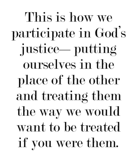 Do you see how the emphasis changes? As our hearts are shaped by his love, we find ourselves empathetic for others instead of using them to our benefit. That’s why Jesus said that doing to others what we would have them do to us would fulfill all the law and the prophets. This is how we participate in God’s justice—putting ourselves in the place of the other and treating them the way we would want to be treated if you were them. We all hate being treated unfairly but so easily miss when we do it to others.
