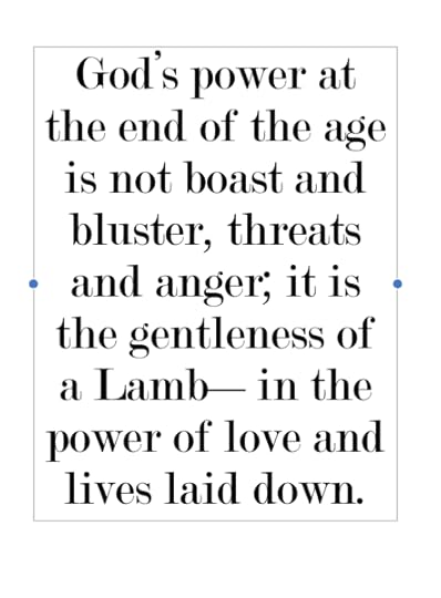 God’s power at the end of the age is not boast and bluster, threats and anger; it is the gentleness of a Lamb. It is in the power of love and lives laid down that God makes himself known in our world, which is why Jesus told us to be “as wise as serpents, but as innocent as doves” (Matthew 10:16). Let’s join him.