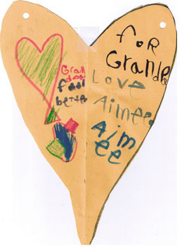 I will treasure this card for a long time! It has six-year-old Aimee pouring out of ever cut, letter, and sketch. It connects me to the one I love so deeply and with whom I share a wonderful grandpa-granddaughter relationship. When I see her card it warms my heart with her love, and it reminds me that God's not evaluating today how good my efforts compare to anyone else's. He's just thrilled that they celebrate the growing bond between us, and they are what I can offer him today taking into account where I am on this journey.