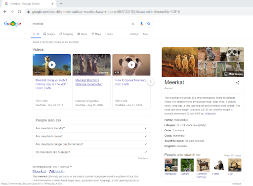 They devised an infobox that we see on the top right corner each time we search something on google about businesses, websites, personas and even meerkats .