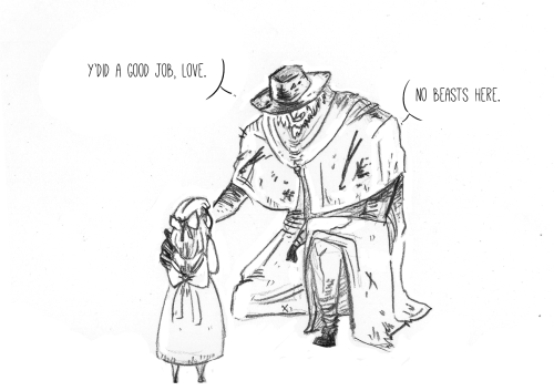 This is a short comic based around the idea that Gascoigne is becoming less and less tolerant of the incense that wards away beasts due to his progressing sickness of the beastly scourge. So it would be natural that he becomes weak to other elements would repel a beast man as well.