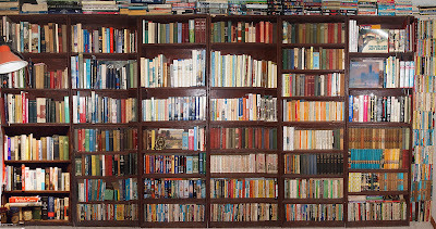 Some three years ago now, I embarked on a quest to find new types of books to read. As you can see from a photo of my library, I've read a variety of books over the last sixty-some years, beginning with the Tom Swift Jr books in the right hand corner. They led to science fiction to fantasy, Sherlock Holmes and Fu Manchu to Raymond Chandler's Philip Marlowe, and latter on to P G Wodehouse, sea stories, Victorian/Edwardian adventures stories, Joe Lincoln's Cape Code novels and Napoleonic era British naval stories, as well as books on London, the Blitz and Taoism. In short, a fair variety of books. However, my tastes for older books meant that they need be found in used book stores that were far away, plus, a quarter of a century ago, knowing that I would some day have to move all those books, I stopped, for the most part, buying books. I became content with borrowing books from the library. But even that became rare, especially once I was engaged on writing my own books.