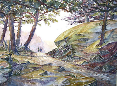 Recently, I've been toying with the idea of producing a book of my paintings of the imaginary land of Cealanda. Beginning in 1992, I started painting a series of landscape paintings of an imaginary country which I named Cealanda. The premise of these painting was that I painted scenes which I encountered while roaming the ways and byways of this imaginary country. The reason behind this premise was that prior to these paintings, I often used old photographs that I found in books as the subject of my paintings. I decided that if I ever wanted to sell my work, it needed to be entirely my own work. I find painting from imagination far easier than painting from life, and it gives me far greater scope, hence the imaginary land, a device I took from the Austin T Wright's Islandia novel in which he created an entire fictional continent, from its history to its geology.