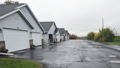 However getting old is only part of the reason. The fact that it is the only flat surface on the hill we live on is my main reason for sticking with the parking lot. When I was a decade younger I used to spend two hours riding some 20 miles or more on my bike every day, spring, summer and fall, on a flat ex-railroad bike trail. Over the succeeding years I eventually cut that back to one 10 mile ride a day because my knees were aching by the end of the season. And then 4 years ago we moved to a new city and to the top of a hill. Between that hill and advancing age, I'm now down to a mere half an hour and 3 miles a day.