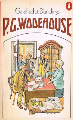 Galahad at Blandings by P G Wodehouse BThis story sees the return of Tipton, who we first met in Full Moon. You may recall that he is the young American who inherited the chain store, who had last visited Blandings to dry out, and ended up getting engaged to Lord Elmsworh's sister Hermione's daughter, the air headed Veronica. The story opens with Tipton briefly back in New York before his wedding in jail along with a friend in jail for disorderly conduct without any money for bail. Tipton, remembering that Lord Elmsworth is also in London for the marriage of his sister Connie to an American Millionaire we met in the last entry, uses his one telephone call to call Lord Elmswoth in the middle of the night, for the loan of $20 to get he and his friend out on bail, explaining that he has no money on him to raise bail. Lord Elmswoth obliges, and when he returns to Blandings mentions to his sister Hermione that Tipton touched him for $20 because he had no money. She jumps to the conclusion that Tipton's fortune has gone belly up- the story seems set around the time of the stock market crash - and rushes off to London to get Veronica to write a letter cancelling the wedding, as landing a rich husband for her is her prime objective. And when they find out, that wasn't the case... why would they believe anything the absent minded Lord Elmworth says... she and her husband need Galahad's help to get ahold of that letter to avert disaster.There's another love story entangled with this one, with the usual brace of imposters. Looked from a distance, all these stories look more or less the same. The enjoyment is in the the witty writing, the bright, brisk, inventive turn of a phrase.