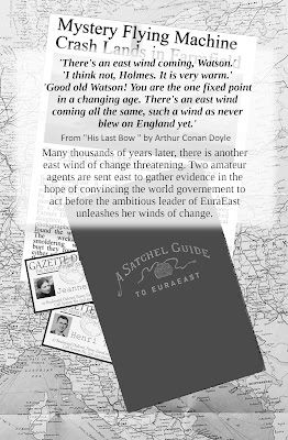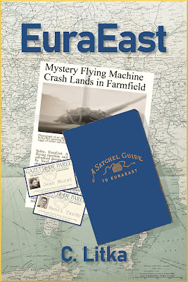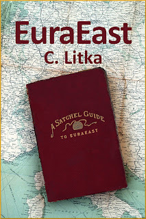 Below is the first version of the cover. For the background I used a 1913 copy of A Satchel Guide to Europe and one of the maps included in the guide book. The only thing I altered, is changing the “To Europe” on the book to read “To EuraEast” in Gimp, a free PhotoShop like program.