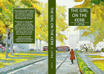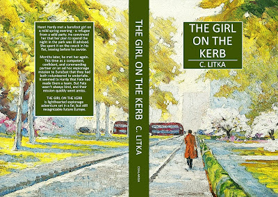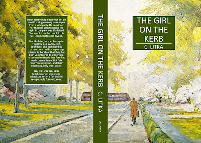This then was my first complete cover. However, as I said, I had time on my hands, time to make changes, the first being to change the name of the novel to The Road to EuraEast because as I was writing it, I felt that it had a certain Hope and Crosby road picture feel to the story. At least that was something I was aiming for. Several months later, I changed the title again while I was querying agents. Being aware of a long series of books that have “The Girl” in the title, and thinking that the agents might actually be familiar with those books even as I doubted that more than one or two of the agent were old enough to be familiar with Hope and Crosby’s road pictures, I changed it to The Girl on the Kerb. And while the title does refer to one aspect of the story, I made this change with my tongue firmly in my cheek. This was one of several little jokes, including the novel’s opening lines setting out the stakes, that I did just to poke some purely private fun at the publishing world and its expectations.