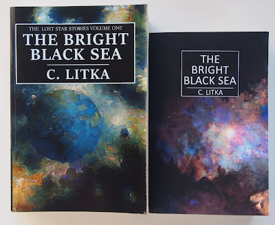 New cover art for the Bright Black Sea, though in fact I used the art from the first version of this book for the new cover. Because of the size of this book, and that of The Lost Star's Sea, with the significant downsizing of the page area, the font size had to be reduced to what you usually find on a mass market paperback. The alternative would have been to break each of the books down into three volumes. For The Bright Black Sea this would be no problem, since it was written as three books. It would be more problematical for The Lost Star's Sea as that was written as a series of novella length episodes. I decided against it for now, as it would most likely just create confusion.