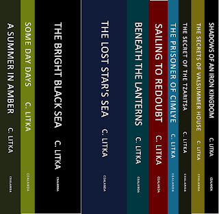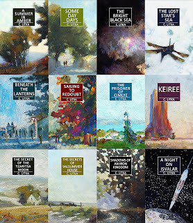 I also took the opportunity to change some of the cover art. Sailing to Redoubt gets a more colorful cover, a painting of mine of the little Tropic Sea island of Lil Lon. The Secrets of Valsummer House looses the rather static picture of Valsummer House, and gets a very minimalist treatment seaside painting. The Lost Star’s Sea has a simpler floating boat design. The Bright Black Sea sees the return of its first artwork with the color reworked. And the existing artwork that remains on the other books get re-worked as well. There is at least one book whose cover I would like to change, so we’ll see if I can either find an old work of mine or paint a new one for it.