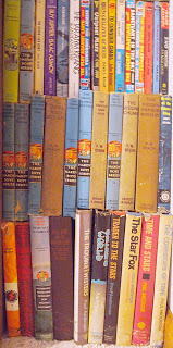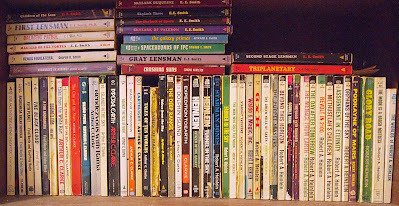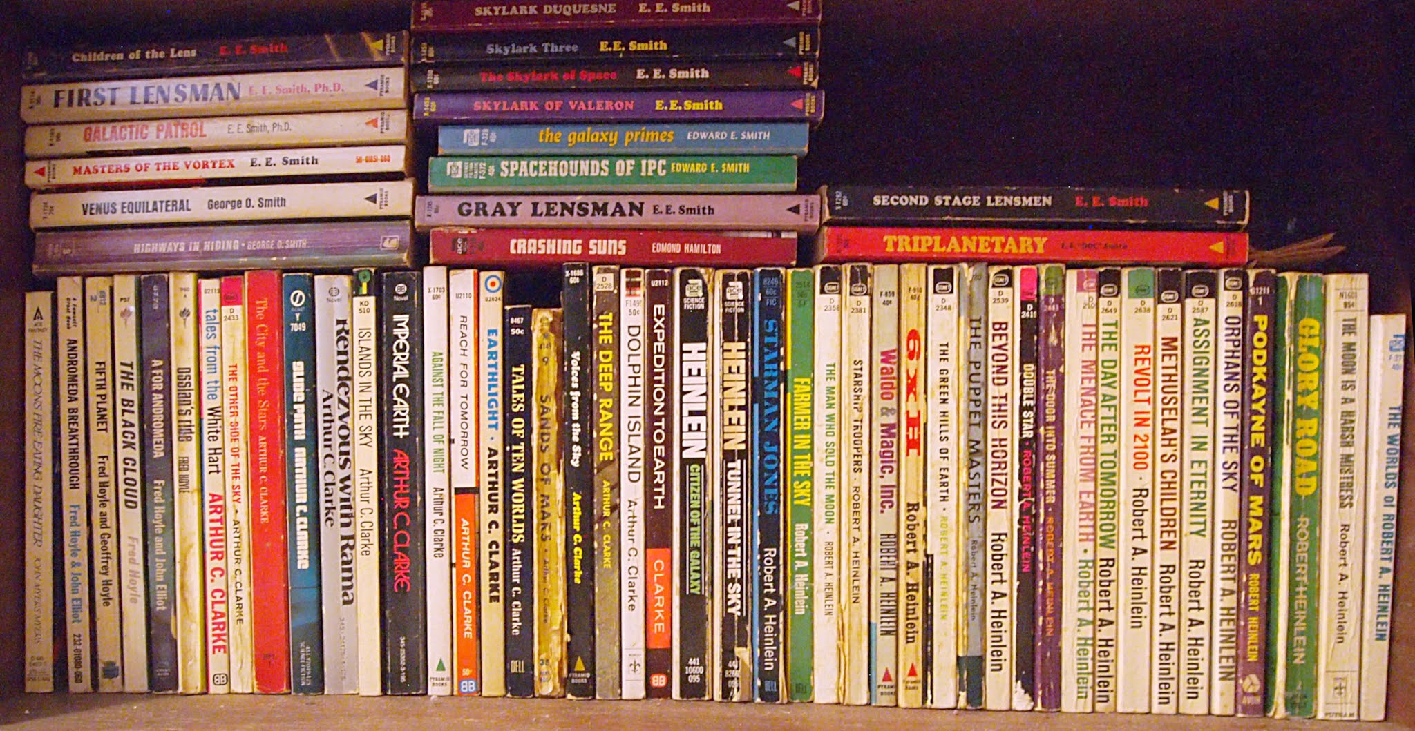 Above, classic SF books here -- my collection of E E Smith, Arthur C Clarke, and Heinlein books